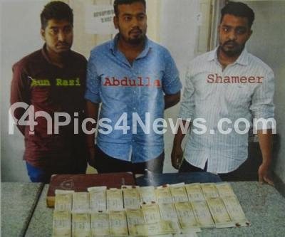 Photo Caption : CCB police arrested Shameer, Abdulla and Razi in a Fake Indian Currency Racket worth 11.5 lakhs from the Viveknagar Police Limits, in Bengaluru on Thursday 16th April 2015
