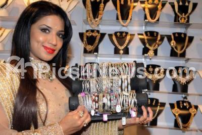 Actress Bhavya Gowda showcasing the Trinklith Wedding collection during the jewels exhibition at Hotel Lalit Ashok, in Bengaluru on Friday 17th April 2015