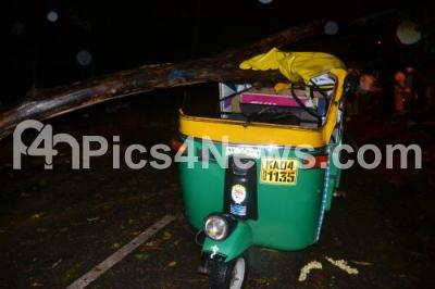 Event Description : A tree uprooted on an Auto Risckshaw at BTM Layout due to heavy rain in the city, in Bangalore on 25th of April 2015