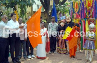 Photo Caption : Mahendra Munnot, owner Maruti Medicals flagged off to inaugurate the Summer camp for Children at Makkala Kuta, organized by Akila Karntaka Makkala Kuta, , in Bangalore on Sunday 26th April 2015