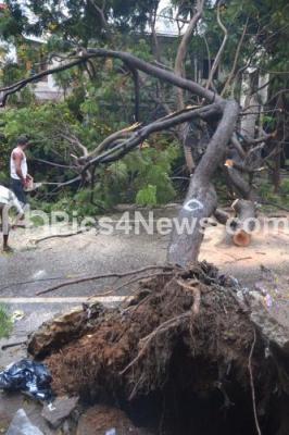 Tress uprooted due to the heavy rains, in Bengaluru on Thursday 30th April 2015