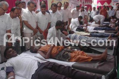 Photo Caption : Dinesh Gundu Rao, Minister for Food and Civil Supplies inaugurated the day long NSUI Blood Donation Camp in collaboration with Indian Red Cross Society, the blood being collected to be sent to Nepal Earth quake disaster management, the NSUI Blood Donation Camp was held at Ganhinagar Square, in Bengaluru on Monday 4th May 2015