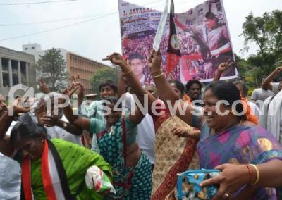 Supporters of J Jayalalithaa, AIADMK chief, celebrated near KR circle, in a 19 year old corruption case, after the verdict went in favor of Jayalalithaa, the jubilant supporters gathered outside were seen dancing, serving sweets and bursting crackers after the verdict was announced by the High court judge, in Bengaluru on Monday 11th May 2015