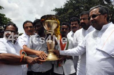Photo Caption : CM Siddaramaiah with NA Harris, MLA and other congress leaders inaugurated the Rajiv Gandhi Jyothi Yatra from Bengaluru to Sriperumbudur, Tamil Nadu, the program was held at KPCC office, in Bengaluru on Friday 15th May 2015