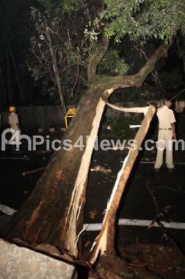 Uprooted tree due to the heavy rain and winds at Ali Asker road, in Bengaluru on Tuesday 19th May 2015