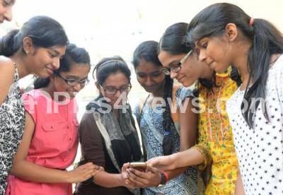 Photo Caption : Students of Venkat International school were seen checking their CBSE 12th results on a mobile, as the CBSE class 12th results were announced, in Bengaluru on Monday 25th May 2015