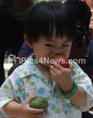 A child seen enjoying eating a mango during the inauguration of the Mango and Jackfruit Mela 2015 at Lalbagh, in Bengaluru on Friday 29th May 2015
