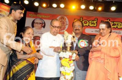 Photo Caption : Senior Advocate BV Acharya with Dr C Somashekar, retired IAS, Dr BM Umesh Kumar, Creative Devices Managing Director, Senior Play Back Singer Shyamala G Bhave and Dr V Nanda Gopal at the inauguration of Pancha Kala Vaibhava at Kuvempu Kalakshetra, in Bengaluru on Sunday 31st May 2015
