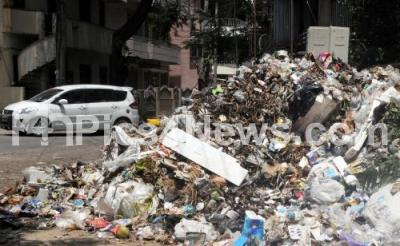 Photo Caption : Garbage piled up on road side at Nehru Nagar, in Bangalore on Monday 8th June 2015