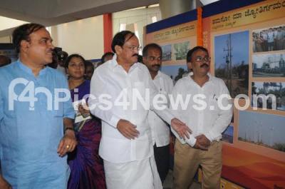 Event Description : Union Ministers Venkaiah Naidu and Ananth Kumar with PC Mohan, MP, Tara, MLC and others inaugurated the photo exhibition “Saal Ek Shuruaat Anek” at Multi Media Hall, Freedom Park, in Bengaluru on Saturday 13th June 2015