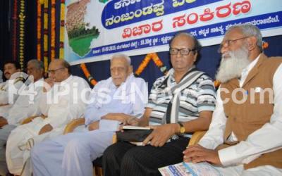 Photo Caption : HS Doreswamy, Freedom Fighter with BT Lalitha Naik, Prof Chandrashekhar Patil and others inaugurated the seminar on Nanjundappa report at Kannada Sahitya Parishat, in Bengaluru on Tuesday 16th June 2015