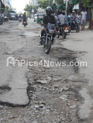 Bad state of roads affecting the vehicular movement and even after the BBMP commissioners order to rectify all faulty roads and pot holes, the authorities at Laggere main road have done nothing to ease the traffic, in Bengaluru on Tuesday 16th June 2015
