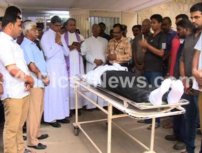 Photo Caption : Family, Friends and well wishers participated in a prayer of Anand Mathew, 20 year old, son of a sitting Kerala High Court Judge, Babu Mathew, a law student, riding pillion on an over speeding motorcycle in the wrong direction, was killed in an accident as the motorcycle rider collided head on with another motorcycle near Dairy Circle, in Bengaluru on Tuesday 16th June 2015