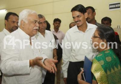 Event Description : Higher Education Minister RV Deshpande in a serious discussion with Bharath Lal Meena, Principal Secretary, Higher Education and Sushama Godbole, IAS, Executive Director KEA during a surprise visit to the CET Council centre at Malleswaram, in Bengaluru on Thursday 18th June 2015