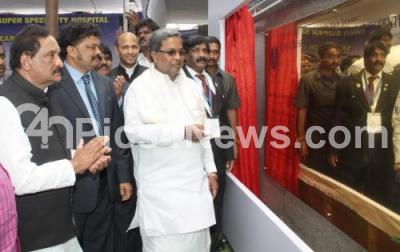 Photo Caption : CM Siddaramaiah with KJ George, Home Minister, Dr Robert Christopher, Chairman, Chris Super Speciality Hospital seen inaugurating the Chris Super Speciality Hospital and Research Center Pvt Ltd at Hennur road, in Bengaluru on Thursday 18th June 2015
