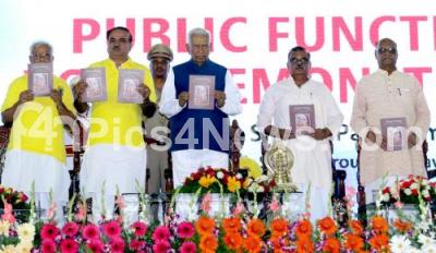 Event Description : Governor Vajubhai Rudabhai Vala with Union Minister Ananth Kumar, Mangesh Bhende released souvenir at the First International Yoga Day organized by Rashtrotthana Parishat at National College Grounds, in Bengaluru on Sunday 21st June 2015