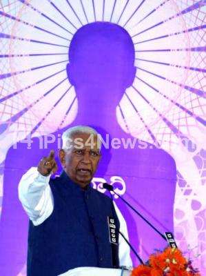 Photo Caption : Governor Vajubhai Rudabhai Vala addressing the First International Yoga Day organized by Rashtrotthana Parishat at National College Grounds, in Bengaluru on Sunday 21st June 2015