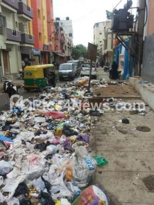 Photo Caption : Garbage thrown everywhere and with a manhole causing a lot of stench outside a school at Armstrong road near Shivajinagar, can the authorities do something about this serious menace, in Bengaluru on Sunday 21st June 2015