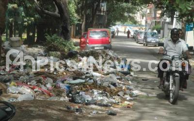 Photo Caption : Garbage Woes have multiplied and it is the same all over the city as this heap is left uncleared on East Kumara Park Road near Gandhi Bhavan , in Bengaluru on Monday 22nd June 2015