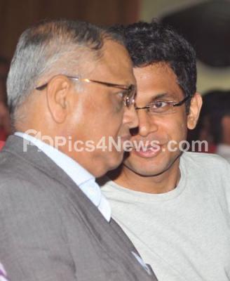 Photo Caption : Narayan Murthy, Co Founder of Infosys seen interacting with son Rohan Murthy at the 34th AGM meeting, in Bangalore on Monday 22nd June 2015