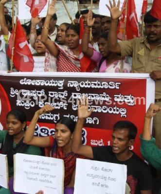 Photo Caption : CPIM members protested in demand for the resignation of Lokayukta Y Bhaskar Rao for alleged corruption charges at SBM Circle, in Bengaluru on Wednesday 1st July 2015