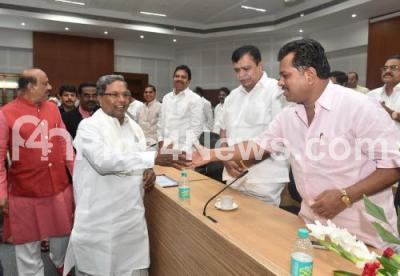 Photo Caption : CM Siddaramaiah seen interacting with Karnataka leaders during the CLP meeting at Suvarna Soudha in Belagavi on Wednesday 1st July 2015