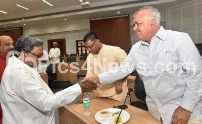 CM Siddaramaiah seen interacting with Karnataka leaders during the CLP meeting at Suvarna Soudha in Belagavi on Wednesday 1st July 2015