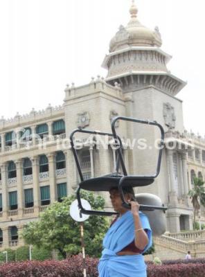 Event Description : Workers carrying chairs to be repaired at vidhan soudha in the absence of the legislatures, in Bengaluru on Friday 3rd July 2015