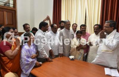 Photo Caption : Navalgunda Assembly Constituency members called on CM Siddaramaiah in the presence of Basavaraja Horatti in Belagavi Wednesday 8th July 2015