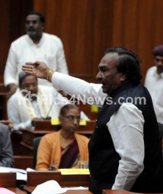 Photo Caption : Opposition leader KS Eshwarappa seen addressing at the Council Session at Suvarna Soudha, in Belagavi on Thursday 9th July 2015