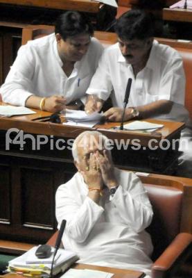 Photo Caption : Ministers RV Deshpande, DK Shivakumar and MLA Ajay Dharam Singh seen during Assembly Session at Vidhana Soudha, in Bengaluru on Friday 17th July 2015