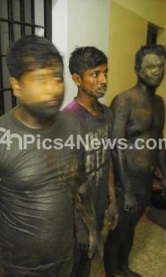Photo Caption : Alert public and the police officials averted a major burglary of a jewellery store as they busted a gang of four men from Bangaladesh busy digging a tunnel to the store near Kanakapura Road in the wee hours of Friday, police chased and arrested three of the gang of four, who have now been identified as Kabir, Hussein and Salim, and Ismail managed to escape, the jewellery store comes near JP Nagar, near Sarakki Junction, in Bengaluru on Friday 17th July 2015