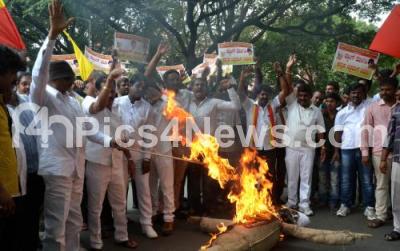 Event Description : Vatal Nagaraj and members of various Kannada organizations protesting against the dubbing of movies in various other languages at SBM circle, in Bengaluru on Thursday 23rd July 2015