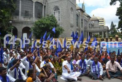 Photo Caption : Dalit Sangharsha Samiti staged a protest against BBMP Commissioner at BBMP head office, in Bengaluru on Friday 24th July 2015