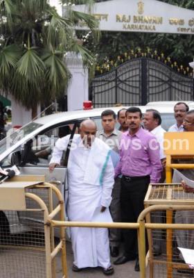 Event Description : Former Prime Minister HD Deve Gowda addressing a press conference after meeting Governor Vajubhai Rudabhai Vala to discuss on various issues at Raj Bhavan, in Bengaluru on Friday 24th July 2015