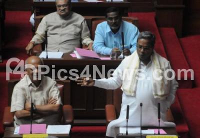 Photo Caption : CM Siddaramaiah seen addressing the Council during Council Session at Vidhan Soudha, in Bengaluru on Saturday 1st August 2015