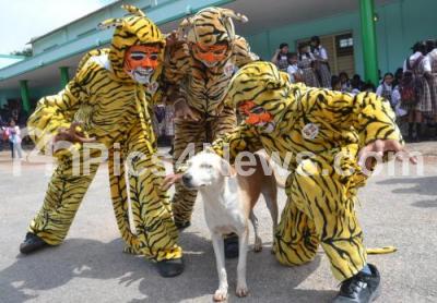 Photo Caption : Students seen dressed like tigers participated in the celebration of 5th Tiger Day at Lalbagh, in Bengaluru on Saturday 1st August 2015