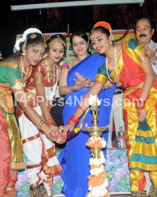 Event Description : Actress Hema Panchamukhi and Bharatanatyam students lighting the lamp to inaugurate cultural and sports meet of Sheshadripuram College, in Bengaluru on Wednesday 5th August 2015