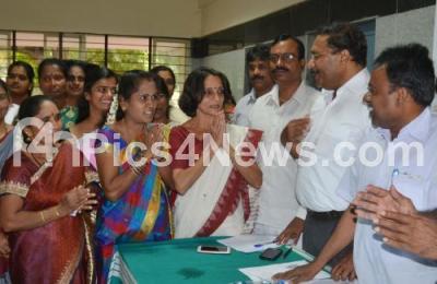 Photo Caption : Civic front candidates for the upcoming BBMP elections being greeted by civic front leaders during the release of Civic front agenda at a meeting at NGO Hall, in Bengaluru on Wednesday 12th August 2015