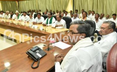 Photo Caption : CM Siddaramaiah held a meeting with farmers regarding the Mahadayi river water dispute at Krishna, in Bengaluru on Thursday 13th August 2015