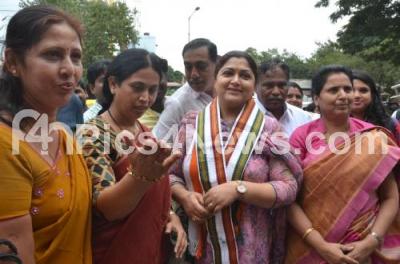 Photo Caption : Film actress and AICC Spoke person Khushboo being welcomed by Lakshmi Hebbalkar, President, State Women Congress at KPCC office, in Bangalore on Sunday 16th August 2015