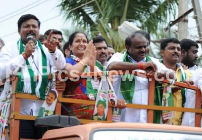 Former CM and JDS State President HD Kumarswamy campaigning with JDS candidates for BBMP elections, in Bangalore on Sunday 16th August 2015