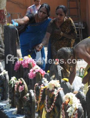 Devotees performing pooja on the occasion of Nagara Panchami, in Bengaluru on Tuesday 18th August 2015