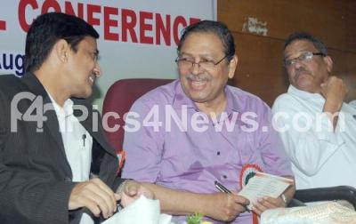 Photo Caption : Former Lokayukta Justice N Santosh Hegde with Vasti Venkatesh, Senior Regional Manager, Central Bank of India and others at the inauguration of "Sixth Biennial conference" organized by Central Bank Employees congress and Central Bank Officers congress at Gandhi Bhavan, in Bangalore on Sunday 23rd August 2015