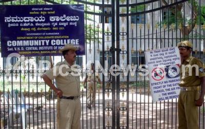 Photo Caption : Police personal tight security at Strong Room at Home Science College, in Bangalore on Sunday 23rd August 2015