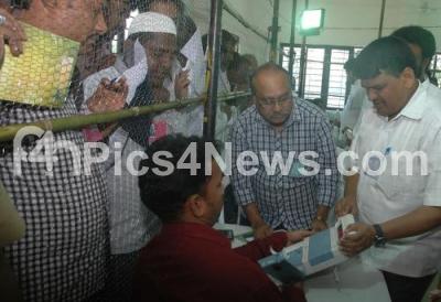 Photo Caption : Election officers seen checking the voting machines to announce the results in one the centers in BBMP Elections 2015, in Bengaluru on Tuesday 25th August 2015