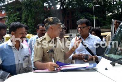 Photo Caption : RTO officials seen checking documents in a checking and enforcement drive at SBM Circle, in Bengaluru on Wednesday 26th August 2015