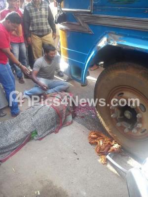 Photo Caption : A 21 year old teacher Ashwini, who died after a lorry hit her vehicle at Cottonpet, in Bengaluru on Wednesday 26th August 2015