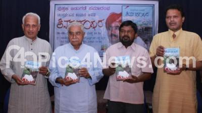 Photo Caption : Chandrashakhara Kambar with Dr Siddalingaiah, Dr Banjagere Jayaprakash, Dr Narahalli Balasubramanya releasing the book “Shivana Dangura†at Indian Institute of World Culture, in Bengaluru on Sunday 30th August 2015