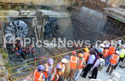 Event Description : BMRCL Workers successfully breakthrough at Chikpet Metro Station through a Boring Machine, in Bengaluru on Monday 31st August 2015